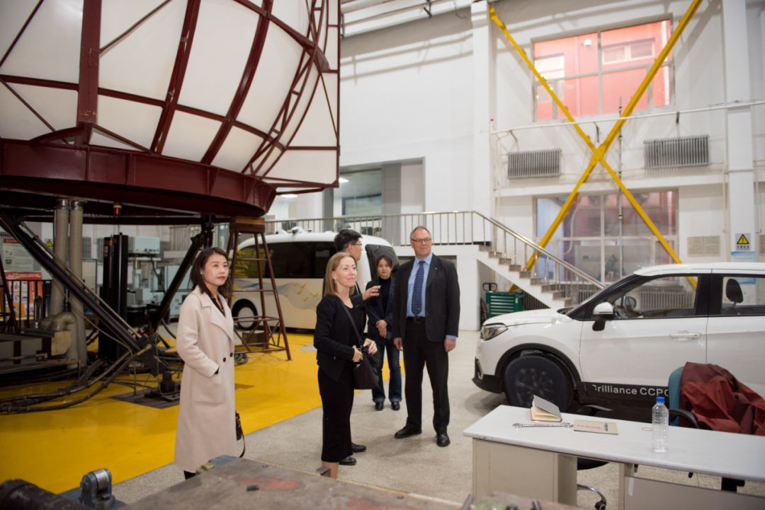 During the visit, the delegation went to College of Automotive Engineering of Jilin University for work meetings. They exchanged information on automotive dynamic simulation and control, automotive lightweight design, automotive electronic control technology, and efficient engine clean energy technology. They also negotiated and reached a cooperative intention on student co-supervision programs. Moreover, the delegation visited State Key Laboratory of Integrated Optoelectronics, Laboratory of Automotive Simulation and Control and Laboratory of Automobile Materials.