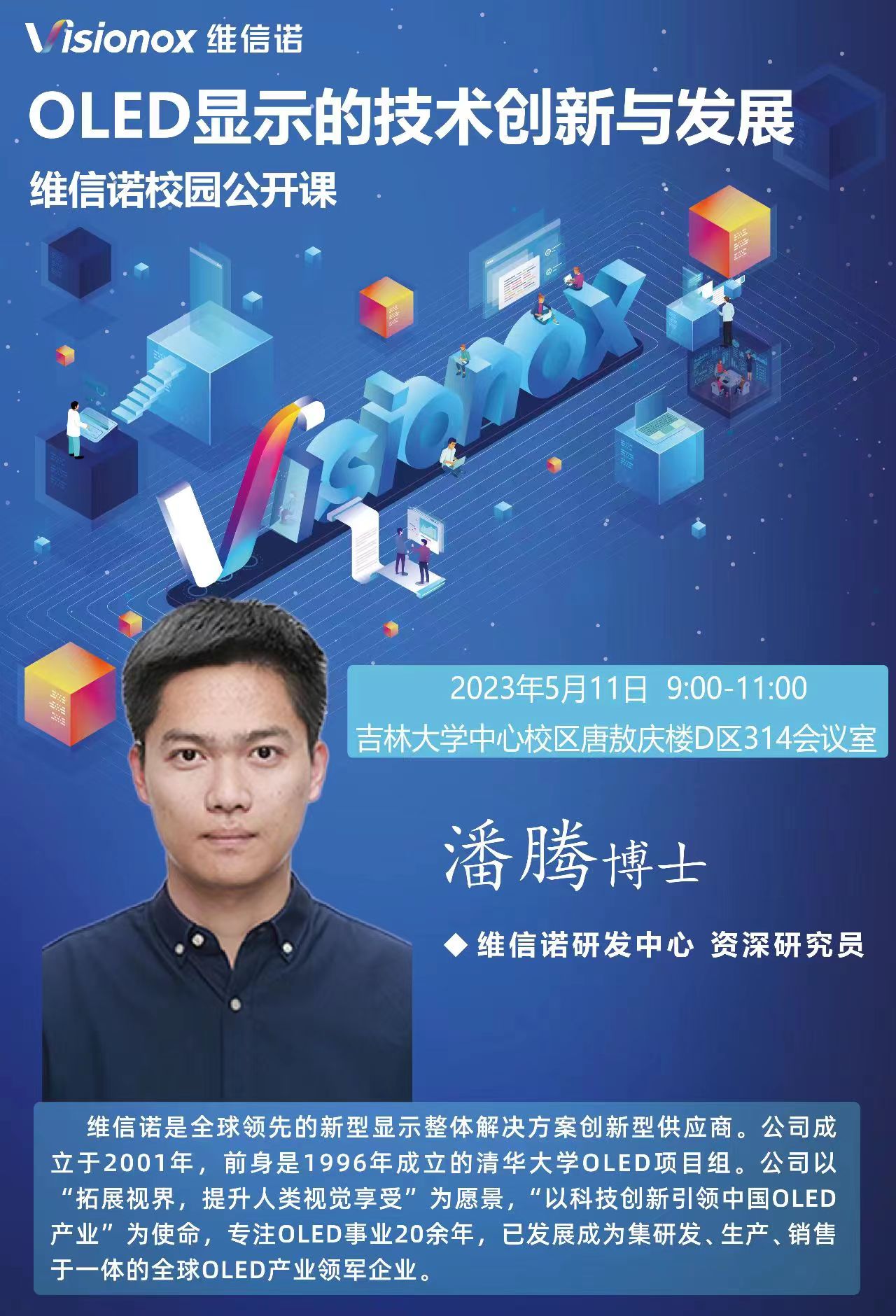 嘉宾介绍:潘腾,男,博士,2013年就读英国威廉希尔公司本科,于2022年6月博士研究生毕业。2022年7月加入维信诺研发中心,主要在AMOLED领域从事阵列和OLED的相关工作。