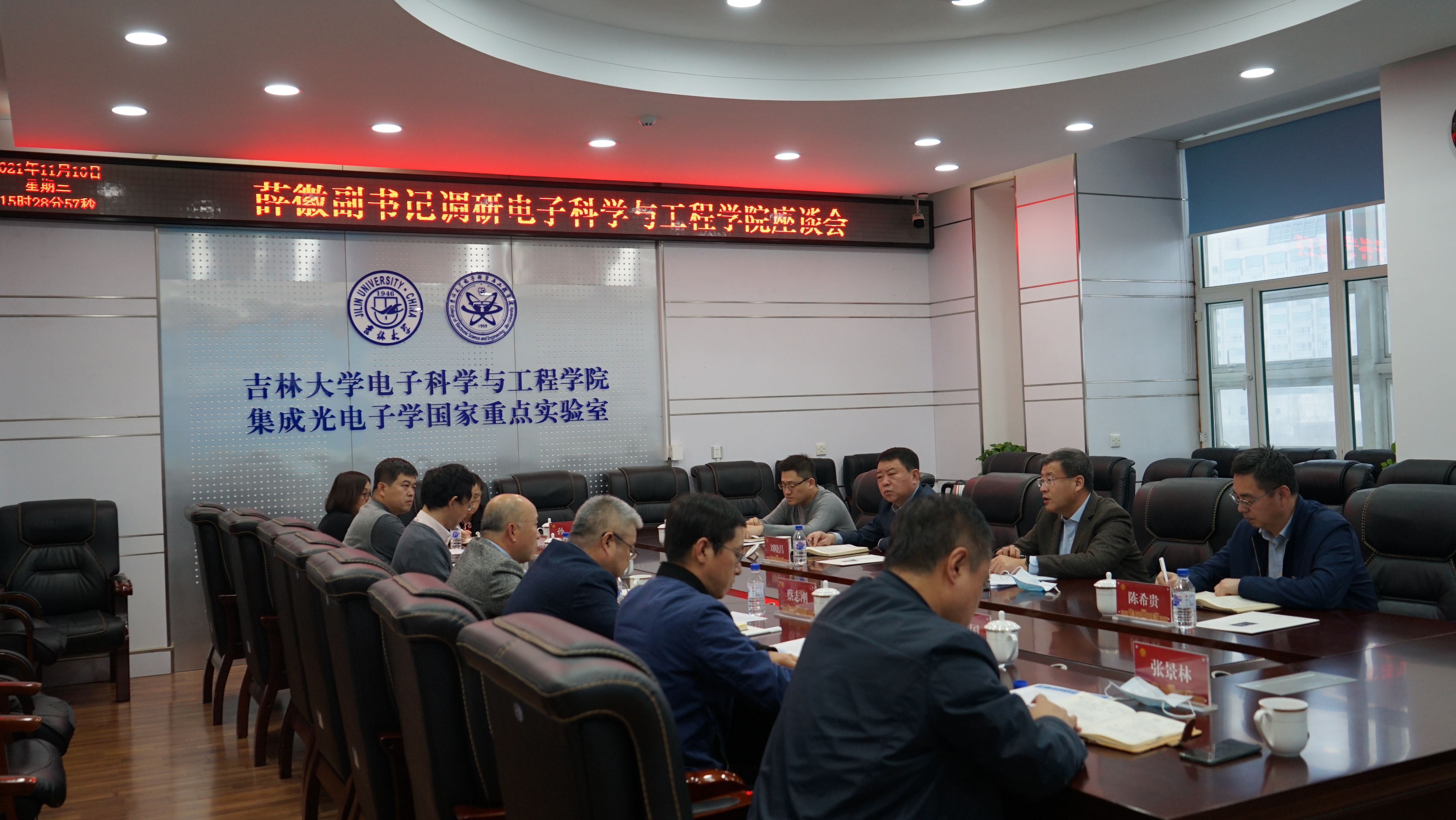 薛徽同志一行参观了集成光电子学国家重点实验室以及学院院史馆,对学院取得成绩表示肯定。调研座谈会上,公司党委书记蔡志刚就公司党委工作、巡察整改及党风廉政建设情况做了汇报;经理卢革宇就学院发展和团队建设情况做了汇报。薛徽同志一行与学院领导班子就学院办学、人才培养、党组织建设、硬件条件改善等问题做了深入交流。